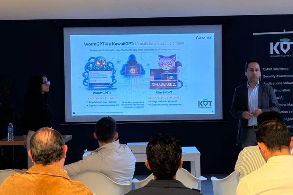 De parte de KOT, contamos con la participación de nuestro partner Abnormal AI, quien compartió información clave sobre el funcionamiento de su plataforma y cómo ésta ayuda a las empresas a enfrentar los principales problemas de ciberseguridad en el email, enfocadas en proteger a las organizaciones de la CDMX frente a amenazas digitales cada vez más sofisticadas.